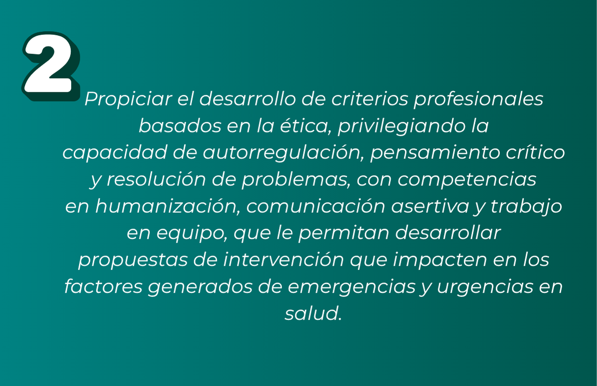 Enfocado en la promoción de la salud y la prevención de la enfermedad, con herramientas fundamentadas en pensamiento crítico, criterio ético y sólidas bases científicas. Además, con habilidades de trabajo en equipo, gestión del conocimiento y generación de estrategias integrales y permanentes que impacten en el mejoramiento de la salud en su campo específico de acción.